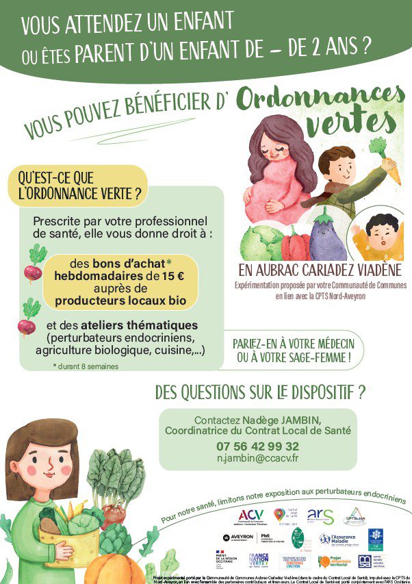 La CPTS-NA et Le Contrat Local de Santé Aubrac Carladez Viadène expérimentent un dispositif « d’ordonnance verte » visant à réduire l’exposition aux perturbateurs endocriniens des femmes enceintes et des parents des enfants dans le cadre des 1000 premiers jours.